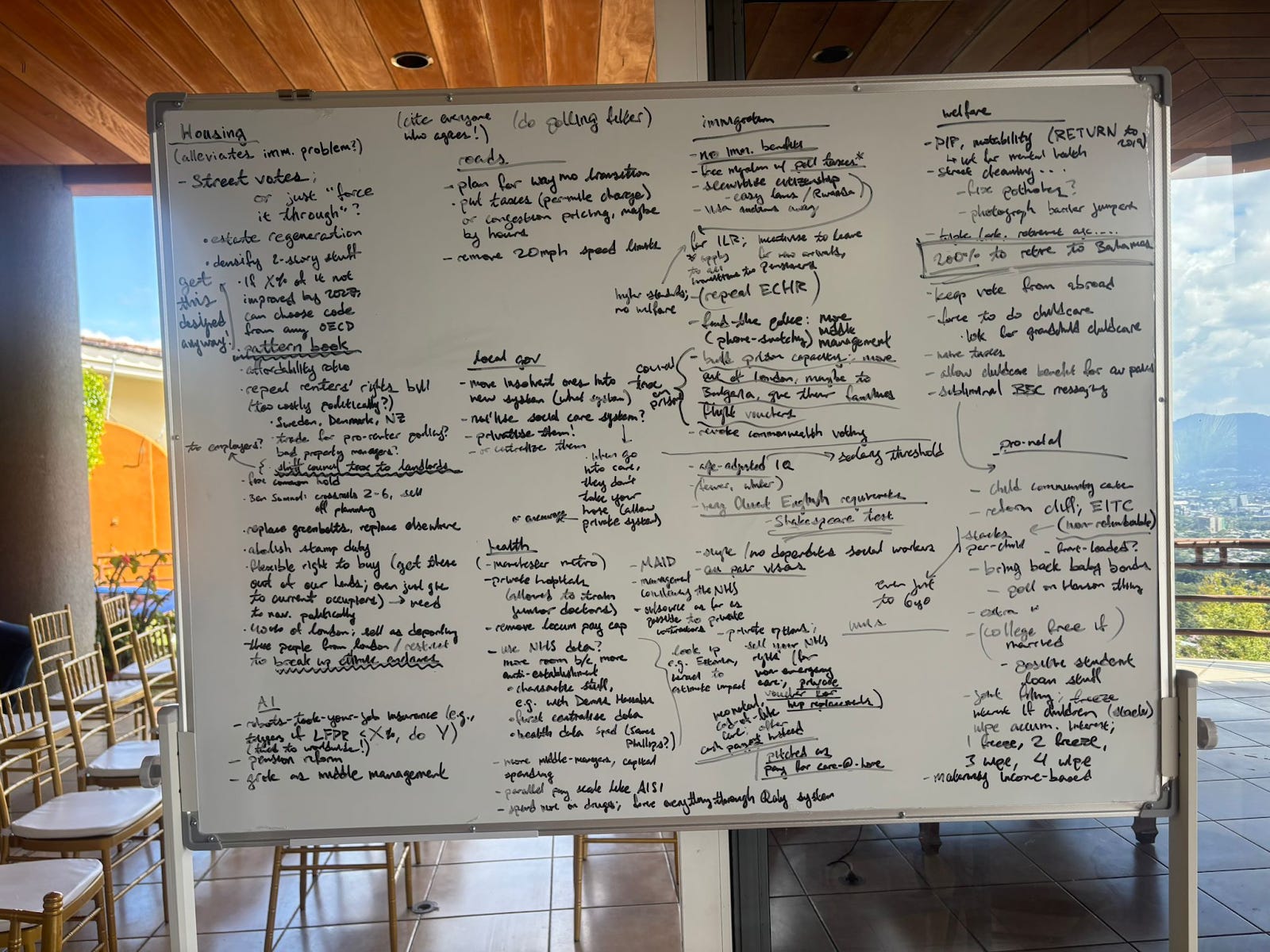 With Hackathon speed, we drafted a platform for Reform, who as of yet don’t have one despite being the highest-polling party in the UK. Housing was the keystone because the party has little to lose in terms of support in London, freeing them to defy the interest groups that would otherwise kibosh such efforts. Robin had some very fresh, political economy-compatible ideas for reorienting the welfare state around fertility, marketizing healthcare and education, and deregulating prediction markets. We have connections at Reform, and we’re trying to get them to take a look at it!